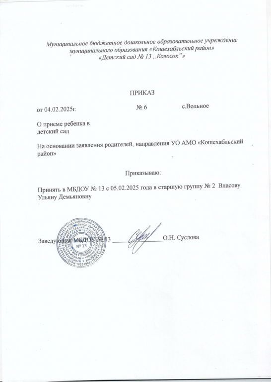 Приказ о зачислении Власовой Ульяны Демьяновны (скачать) (посмотреть)