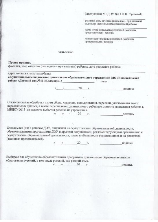 Заявление о приеме ребенка в МБДОУ №13 (скачать) (посмотреть)
